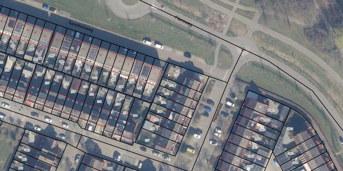 Gebruik de zoekbalk of klik op een perceel om informatie over het perceel te bekijken.