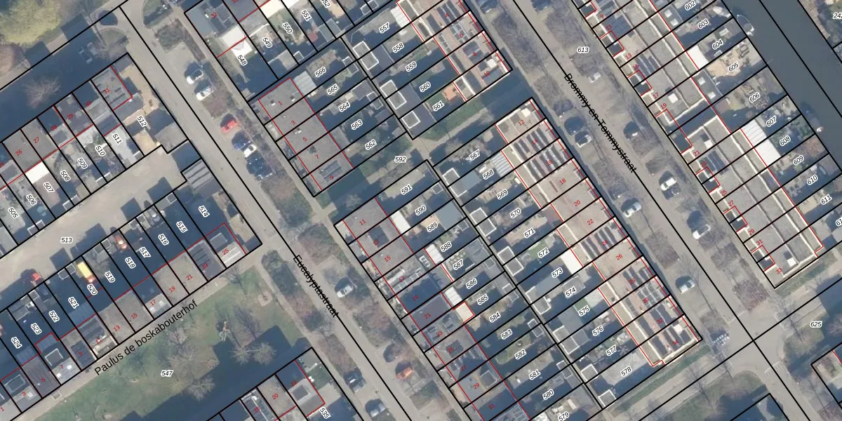 Gebruik de zoekbalk of klik op een perceel om informatie over het perceel te bekijken.