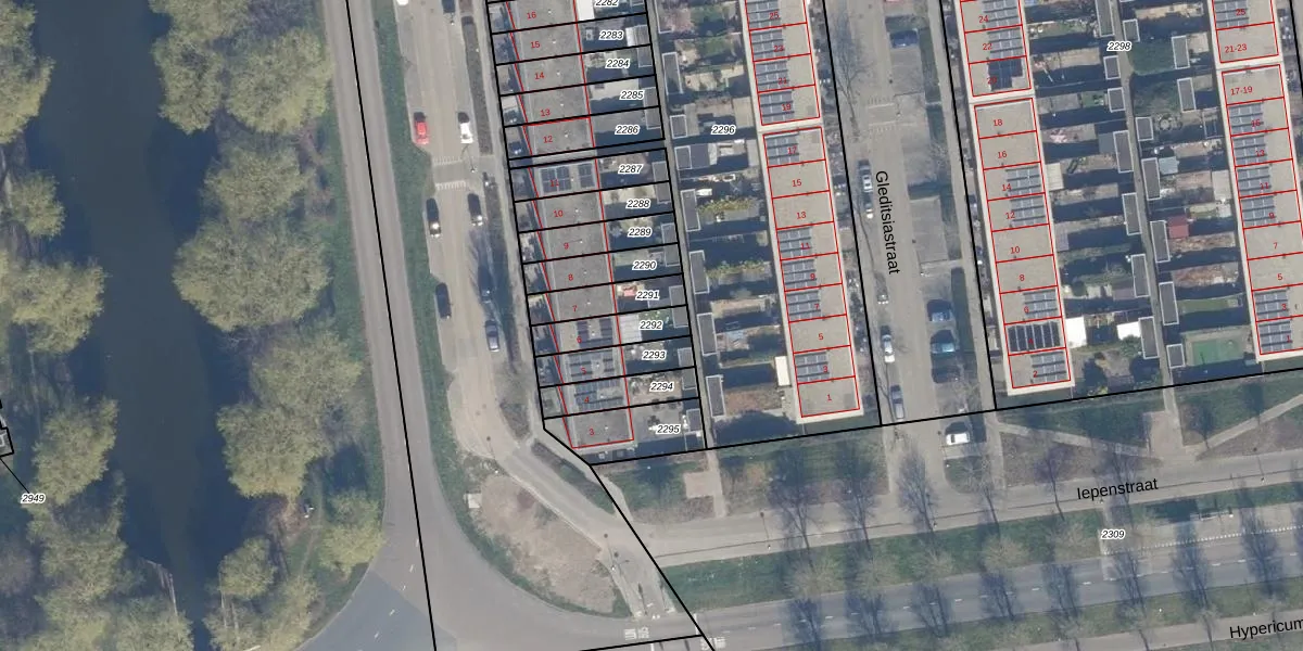 Gebruik de zoekbalk of klik op een perceel om informatie over het perceel te bekijken.