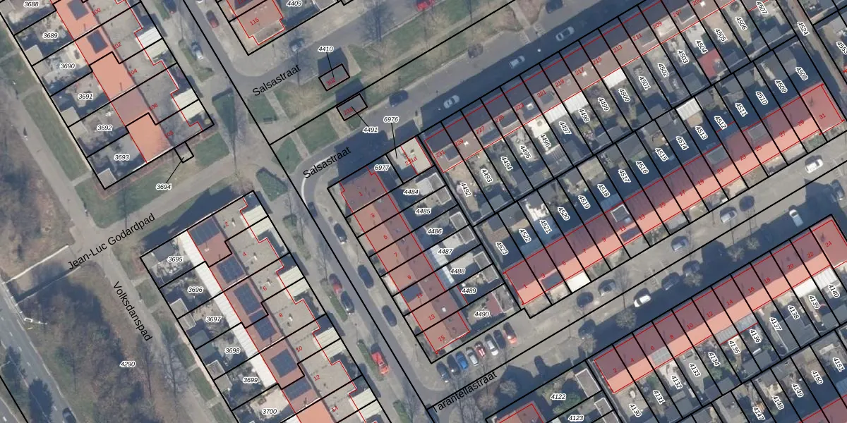 Gebruik de zoekbalk of klik op een perceel om informatie over het perceel te bekijken.