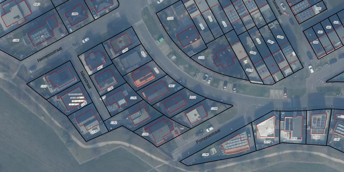 Gebruik de zoekbalk of klik op een perceel om informatie over het perceel te bekijken.
