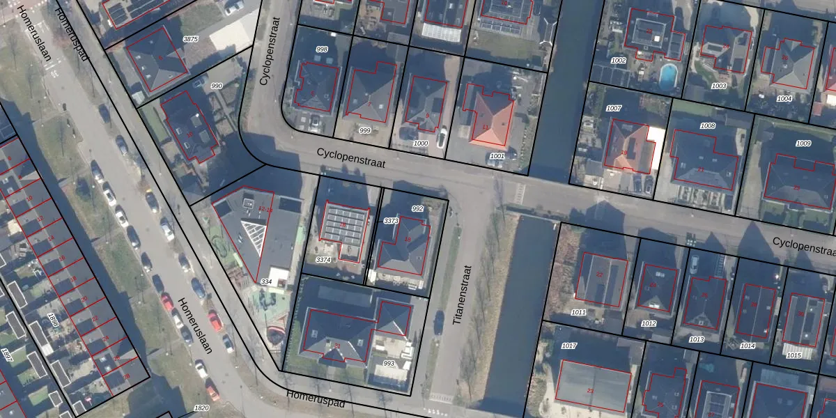 Gebruik de zoekbalk of klik op een perceel om informatie over het perceel te bekijken.