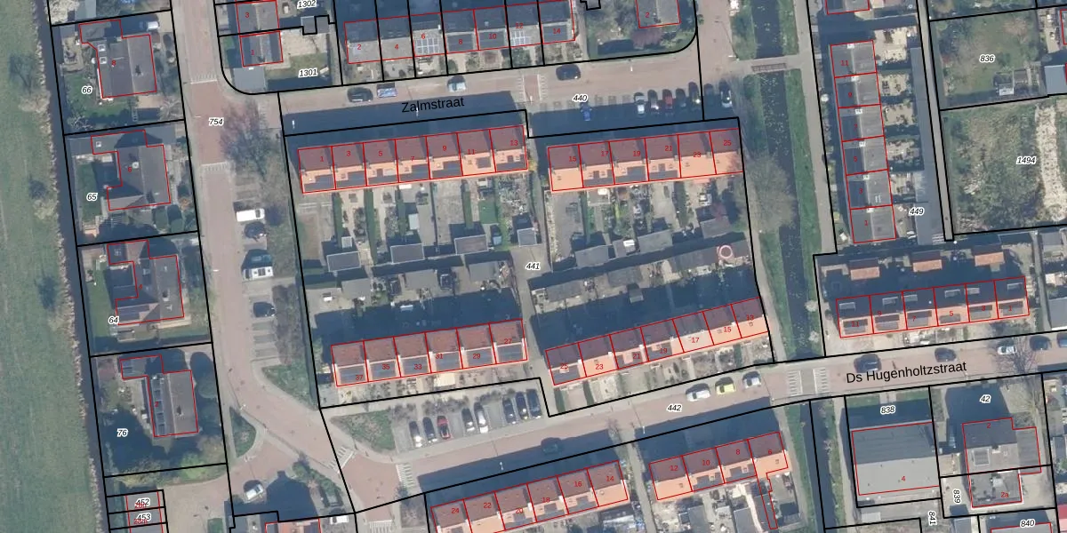 Gebruik de zoekbalk of klik op een perceel om informatie over het perceel te bekijken.