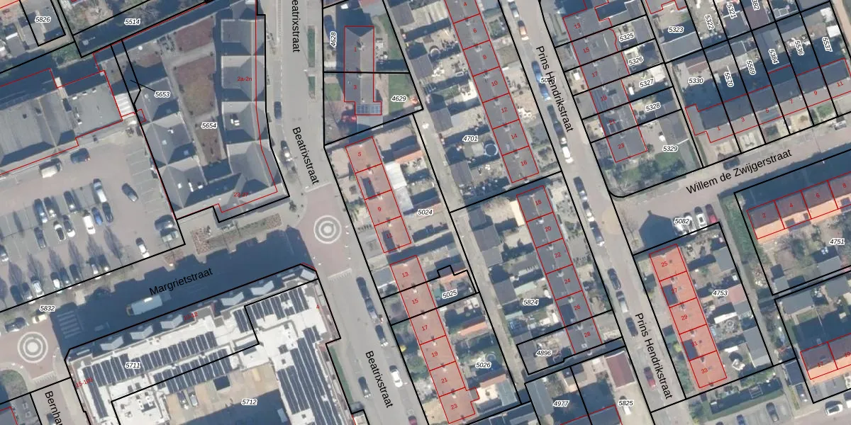 Gebruik de zoekbalk of klik op een perceel om informatie over het perceel te bekijken.