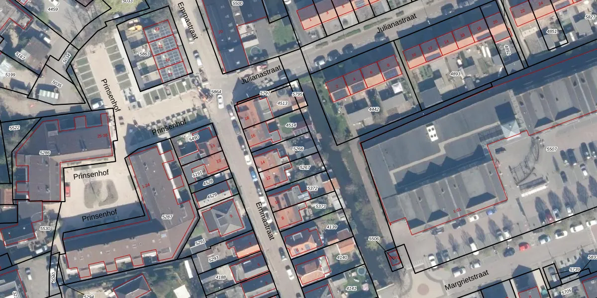 Gebruik de zoekbalk of klik op een perceel om informatie over het perceel te bekijken.