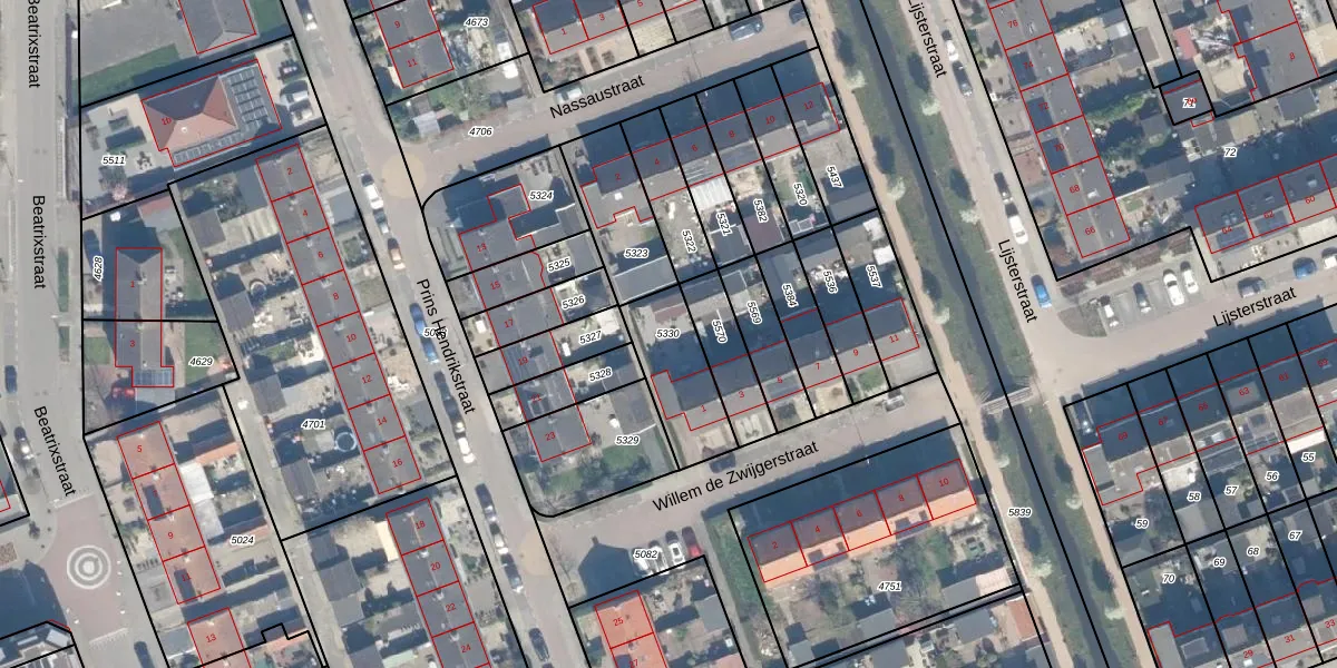Gebruik de zoekbalk of klik op een perceel om informatie over het perceel te bekijken.