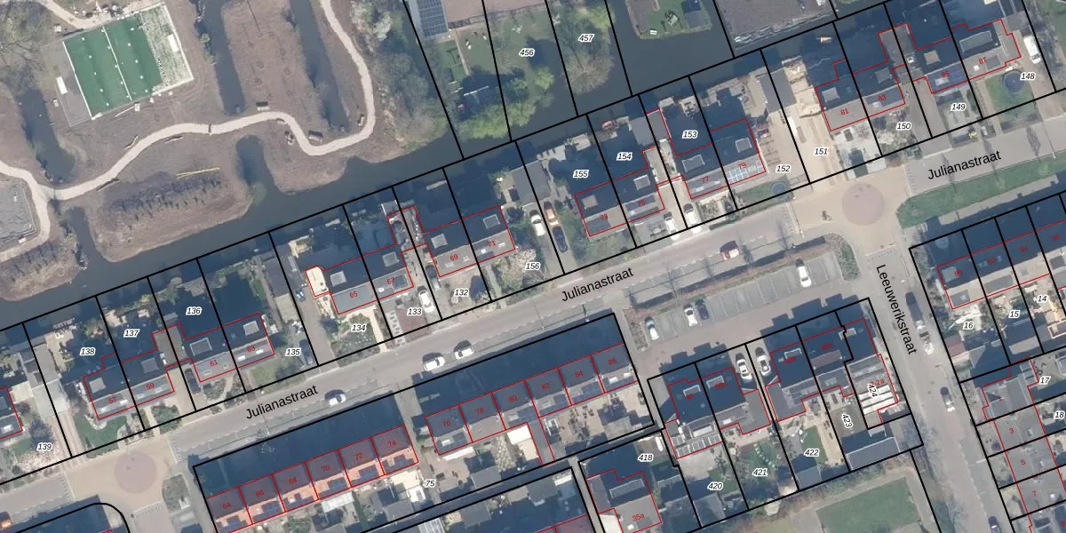 Gebruik de zoekbalk of klik op een perceel om informatie over het perceel te bekijken.