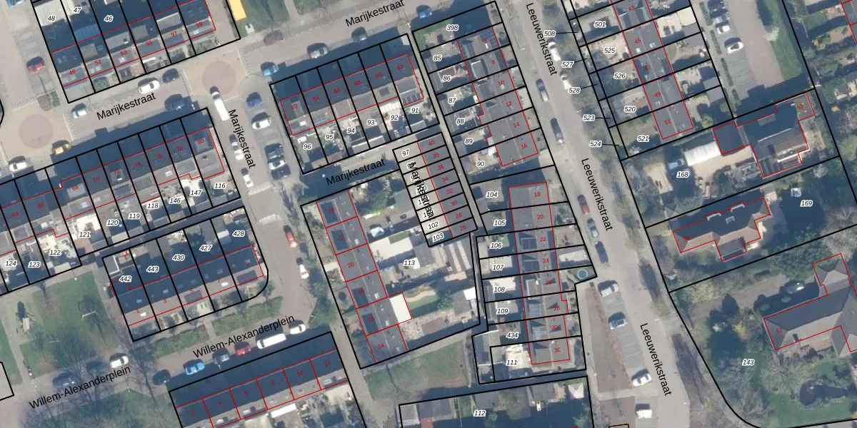 Gebruik de zoekbalk of klik op een perceel om informatie over het perceel te bekijken.
