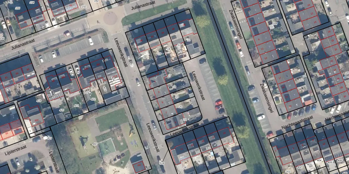 Gebruik de zoekbalk of klik op een perceel om informatie over het perceel te bekijken.
