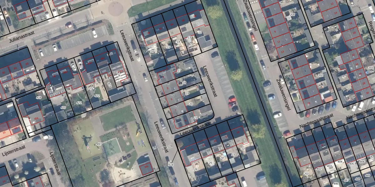 Gebruik de zoekbalk of klik op een perceel om informatie over het perceel te bekijken.
