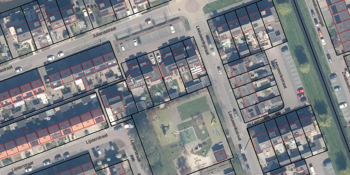 Gebruik de zoekbalk of klik op een perceel om informatie over het perceel te bekijken.