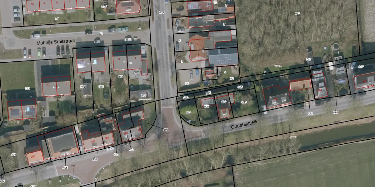 Gebruik de zoekbalk of klik op een perceel om informatie over het perceel te bekijken.