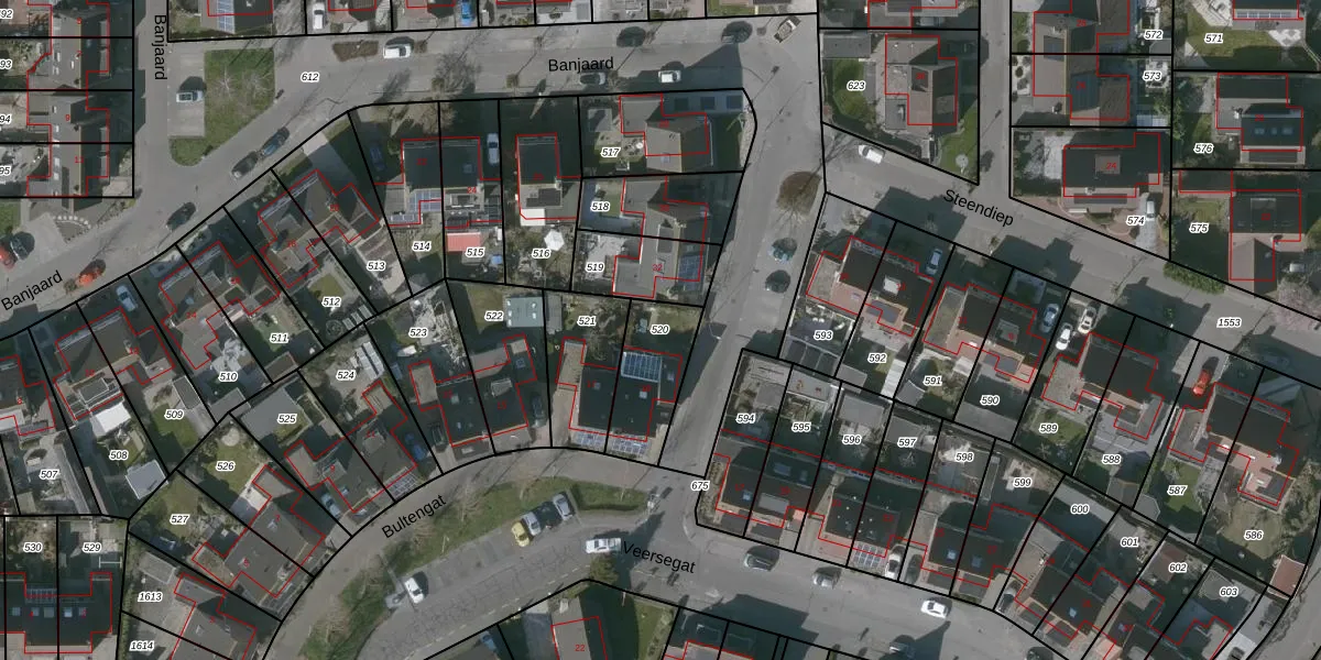 Gebruik de zoekbalk of klik op een perceel om informatie over het perceel te bekijken.