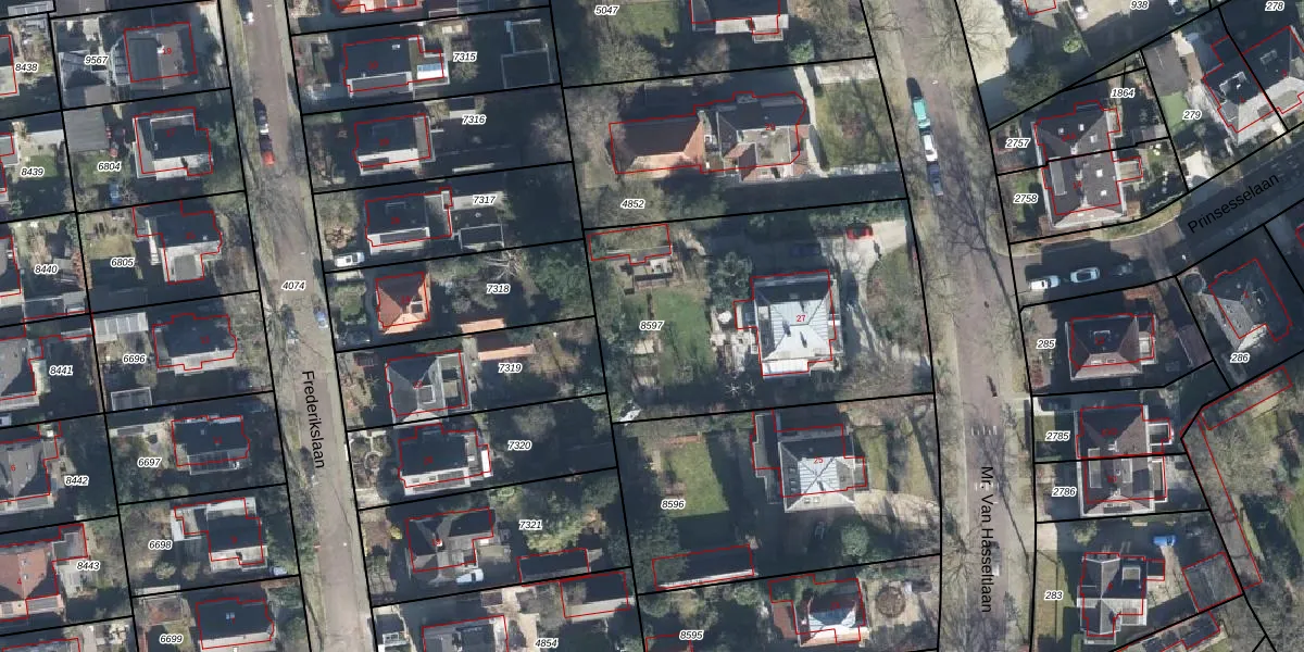 Gebruik de zoekbalk of klik op een perceel om informatie over het perceel te bekijken.