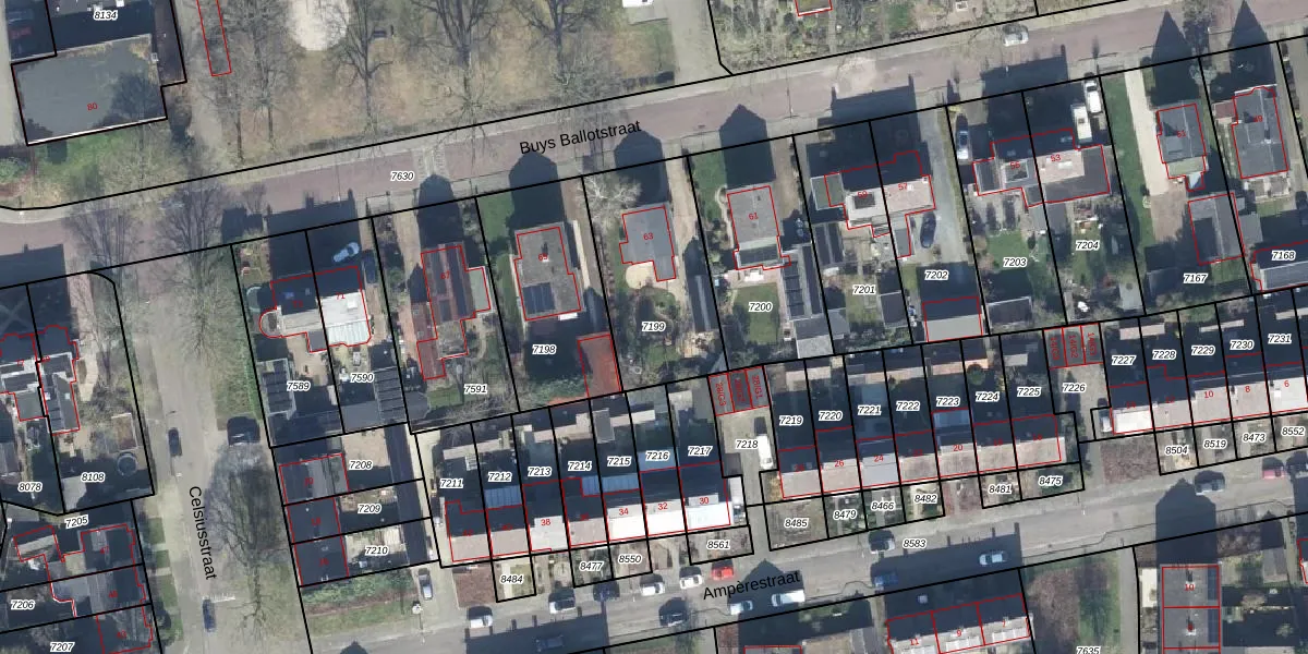 Gebruik de zoekbalk of klik op een perceel om informatie over het perceel te bekijken.