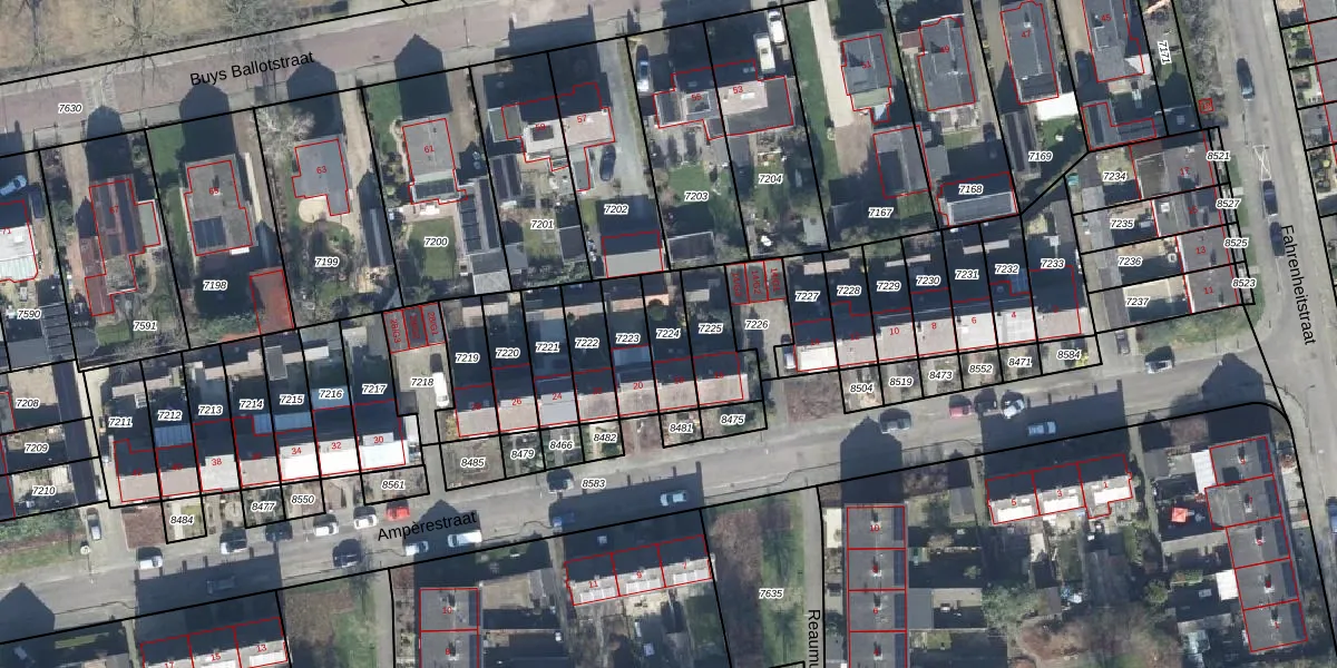Gebruik de zoekbalk of klik op een perceel om informatie over het perceel te bekijken.