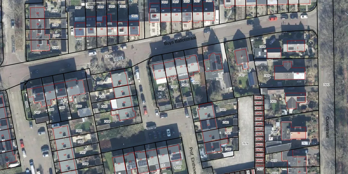 Gebruik de zoekbalk of klik op een perceel om informatie over het perceel te bekijken.