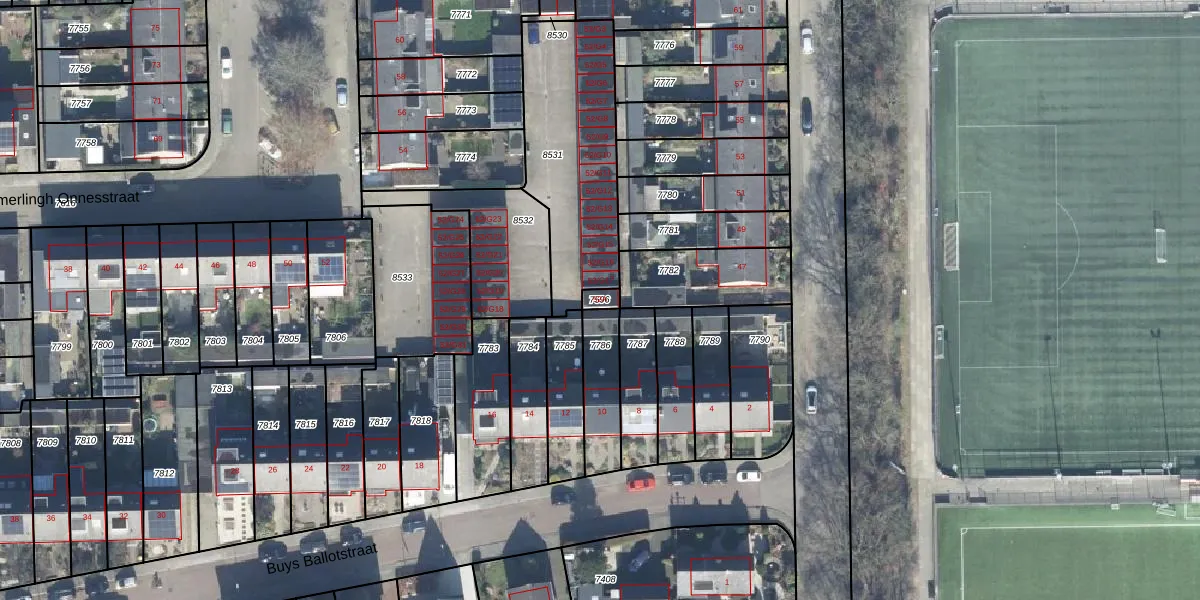 Gebruik de zoekbalk of klik op een perceel om informatie over het perceel te bekijken.