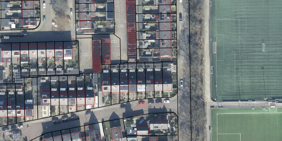 Gebruik de zoekbalk of klik op een perceel om informatie over het perceel te bekijken.