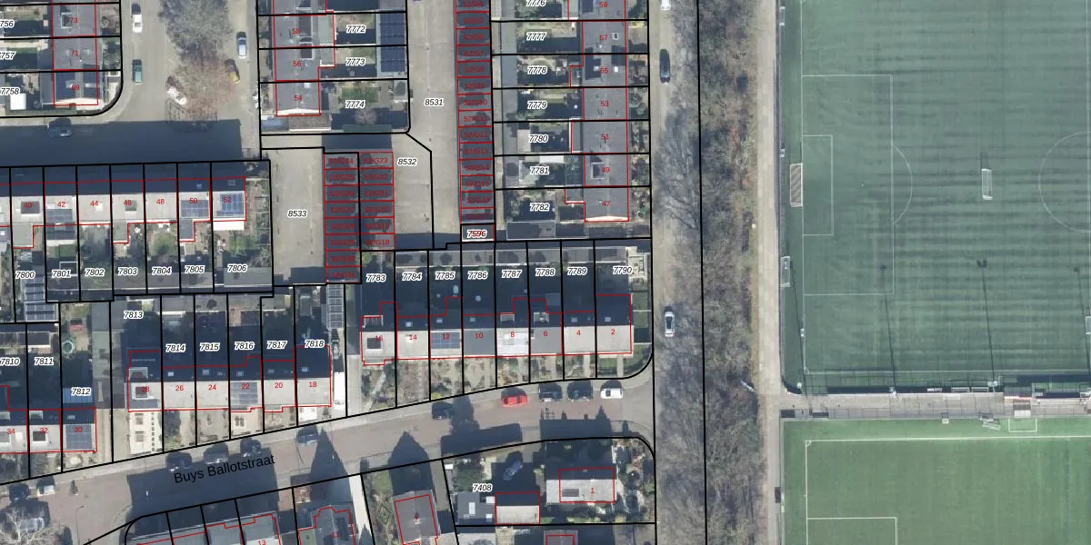 Gebruik de zoekbalk of klik op een perceel om informatie over het perceel te bekijken.