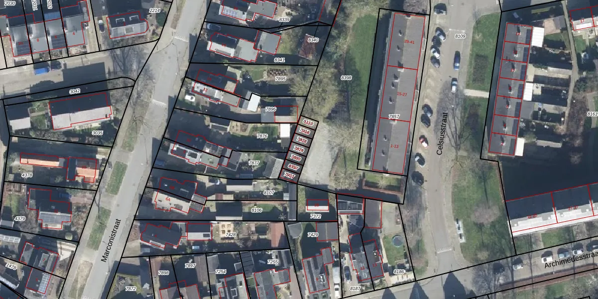 Gebruik de zoekbalk of klik op een perceel om informatie over het perceel te bekijken.