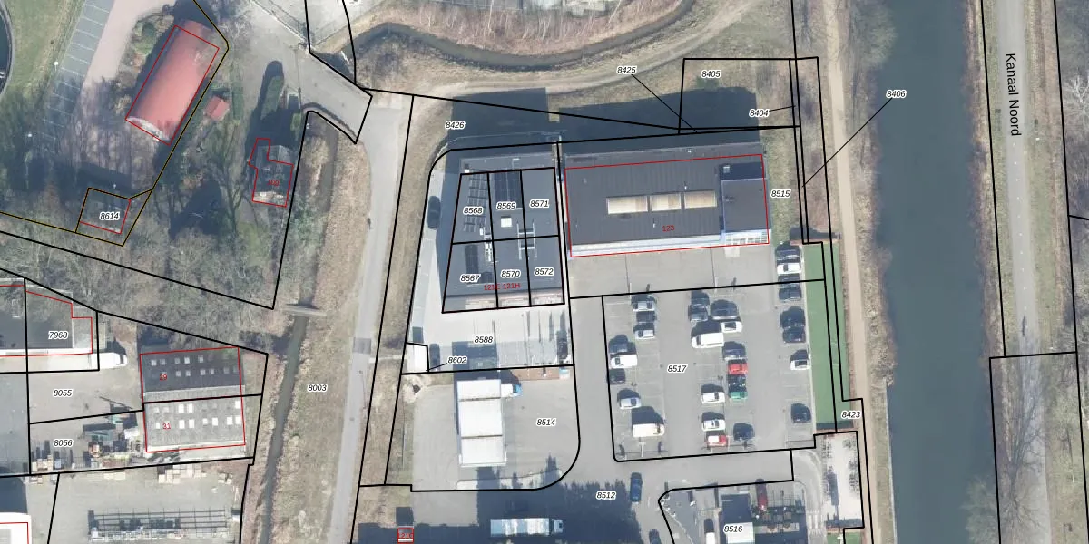Gebruik de zoekbalk of klik op een perceel om informatie over het perceel te bekijken.