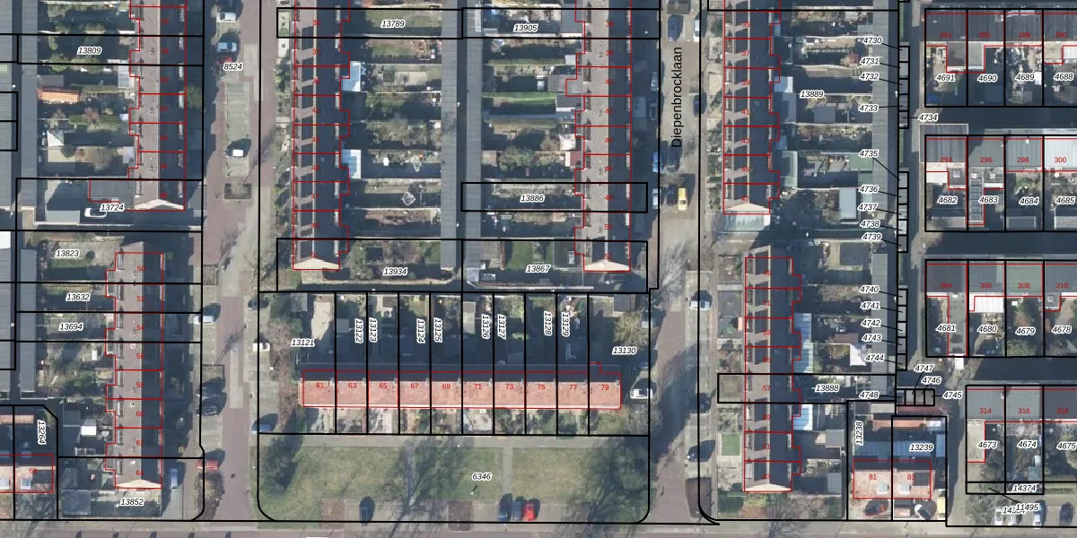 Gebruik de zoekbalk of klik op een perceel om informatie over het perceel te bekijken.