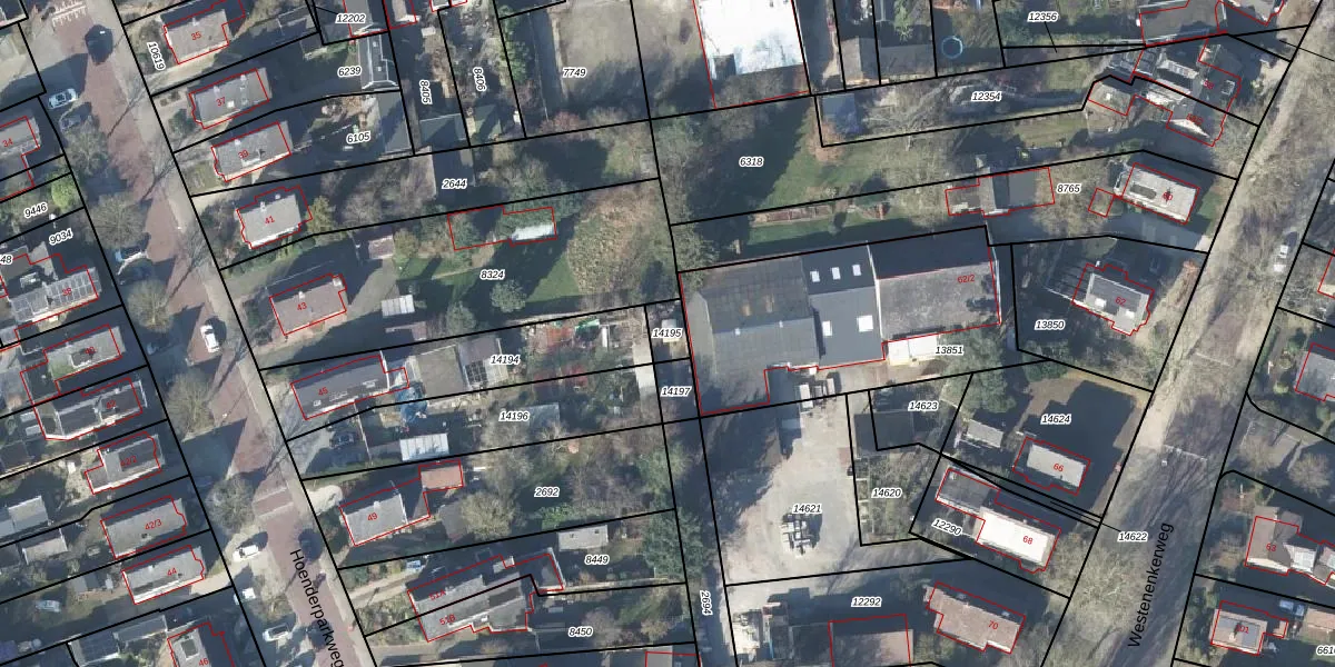 Gebruik de zoekbalk of klik op een perceel om informatie over het perceel te bekijken.