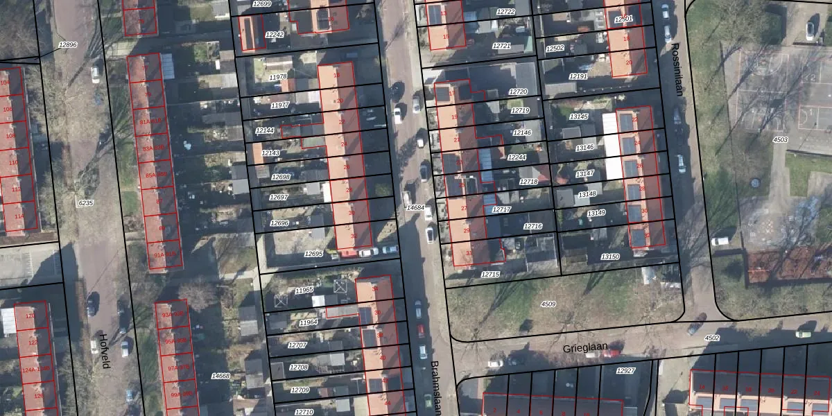 Gebruik de zoekbalk of klik op een perceel om informatie over het perceel te bekijken.