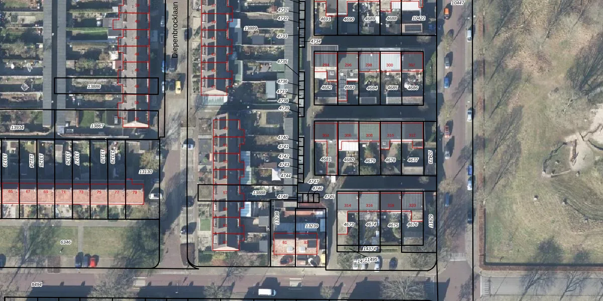 Gebruik de zoekbalk of klik op een perceel om informatie over het perceel te bekijken.
