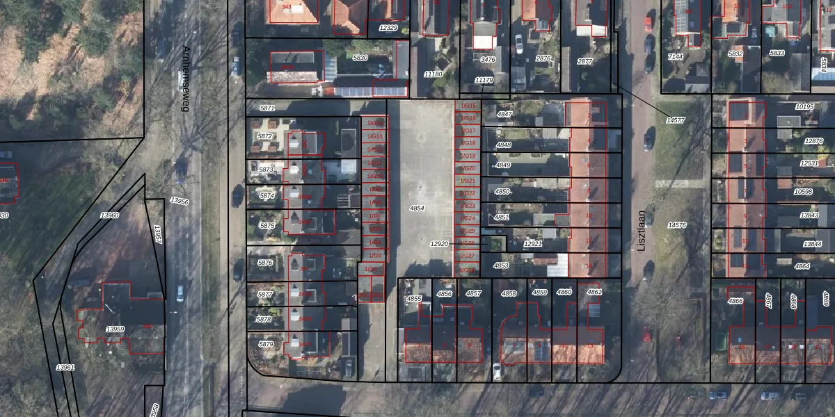 Gebruik de zoekbalk of klik op een perceel om informatie over het perceel te bekijken.