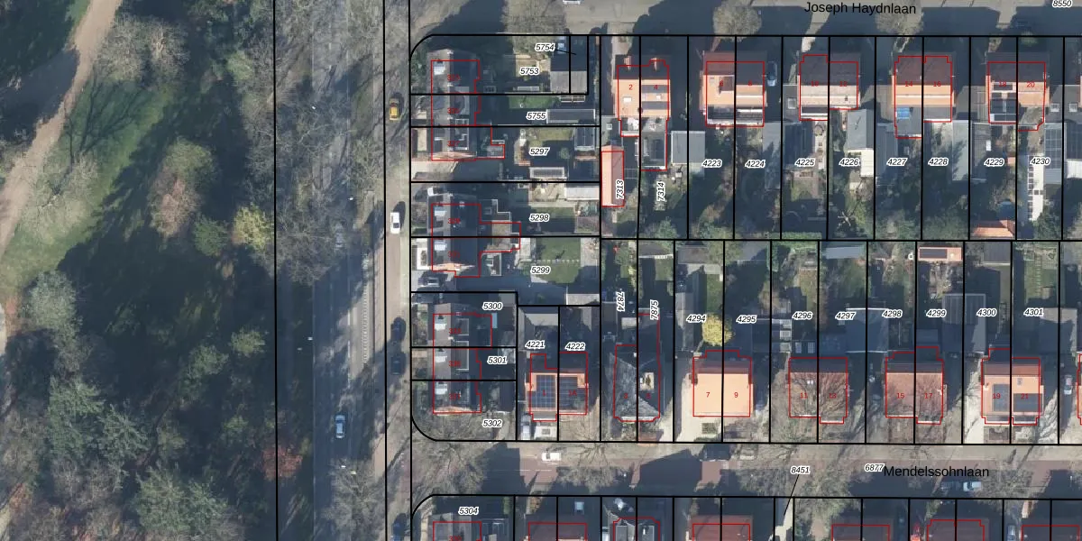 Gebruik de zoekbalk of klik op een perceel om informatie over het perceel te bekijken.