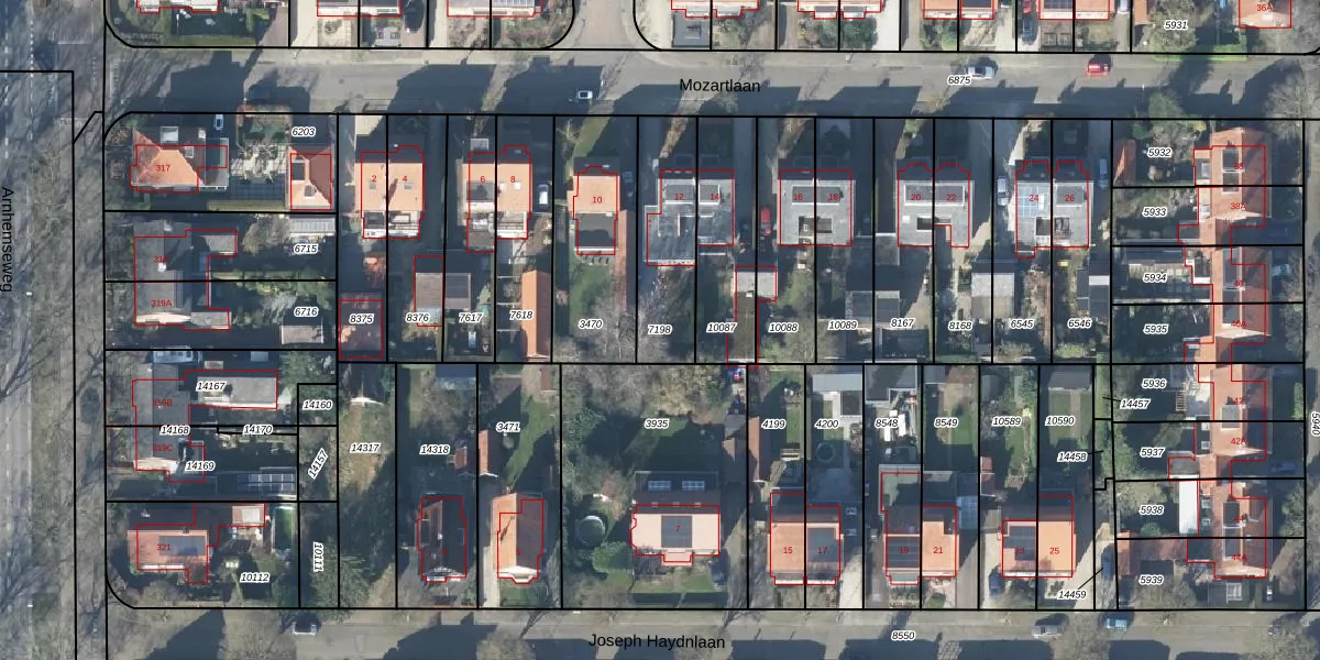 Gebruik de zoekbalk of klik op een perceel om informatie over het perceel te bekijken.