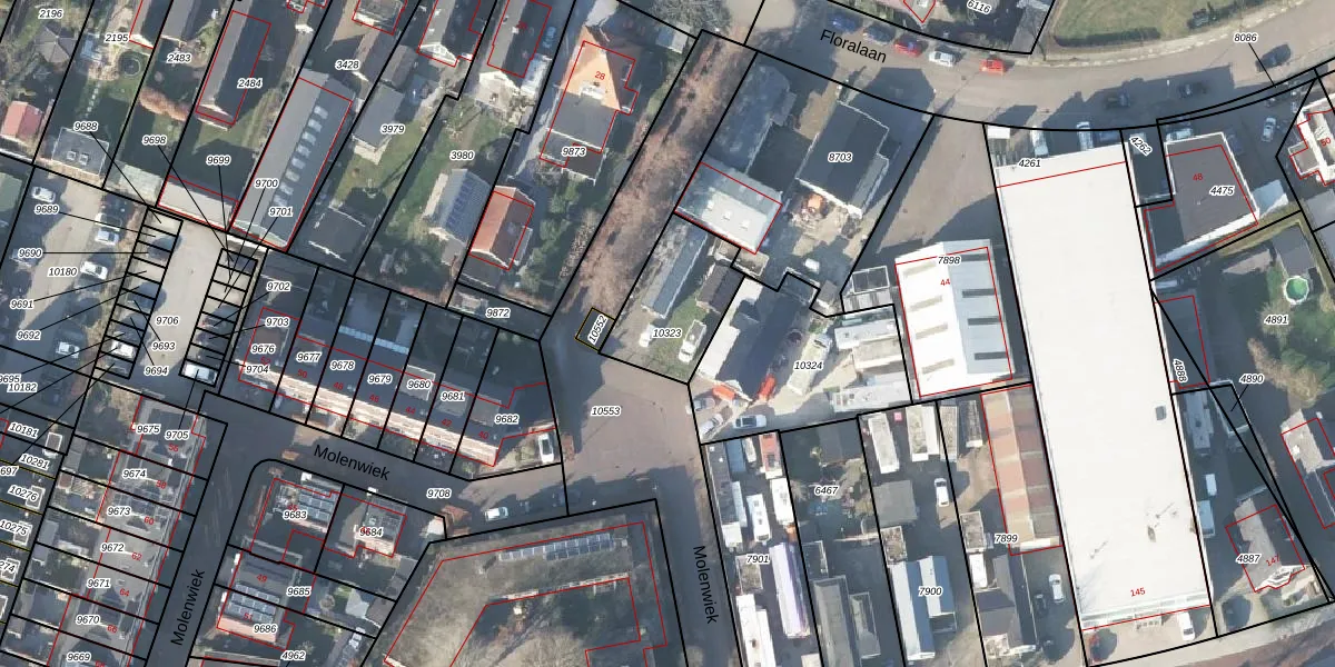 Gebruik de zoekbalk of klik op een perceel om informatie over het perceel te bekijken.