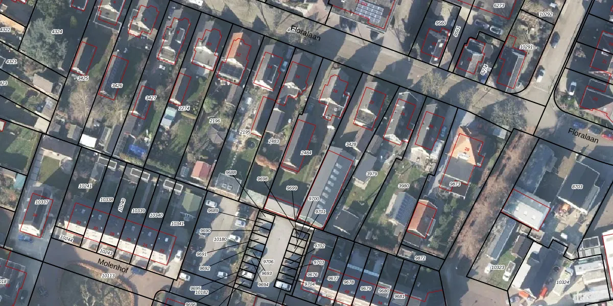 Gebruik de zoekbalk of klik op een perceel om informatie over het perceel te bekijken.