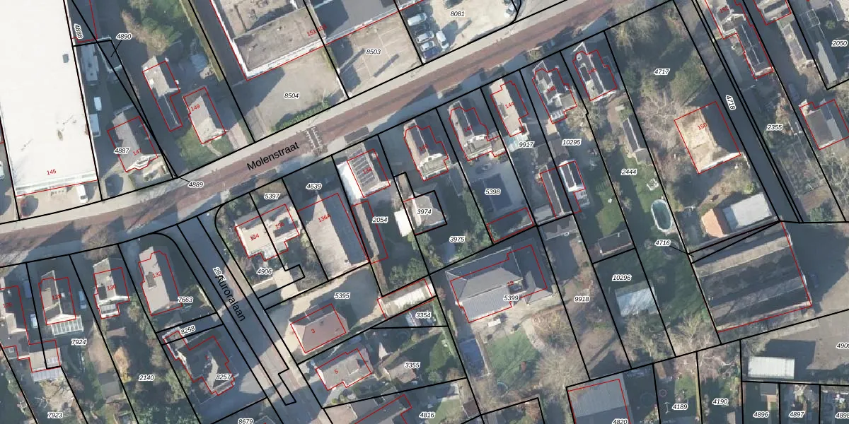 Gebruik de zoekbalk of klik op een perceel om informatie over het perceel te bekijken.
