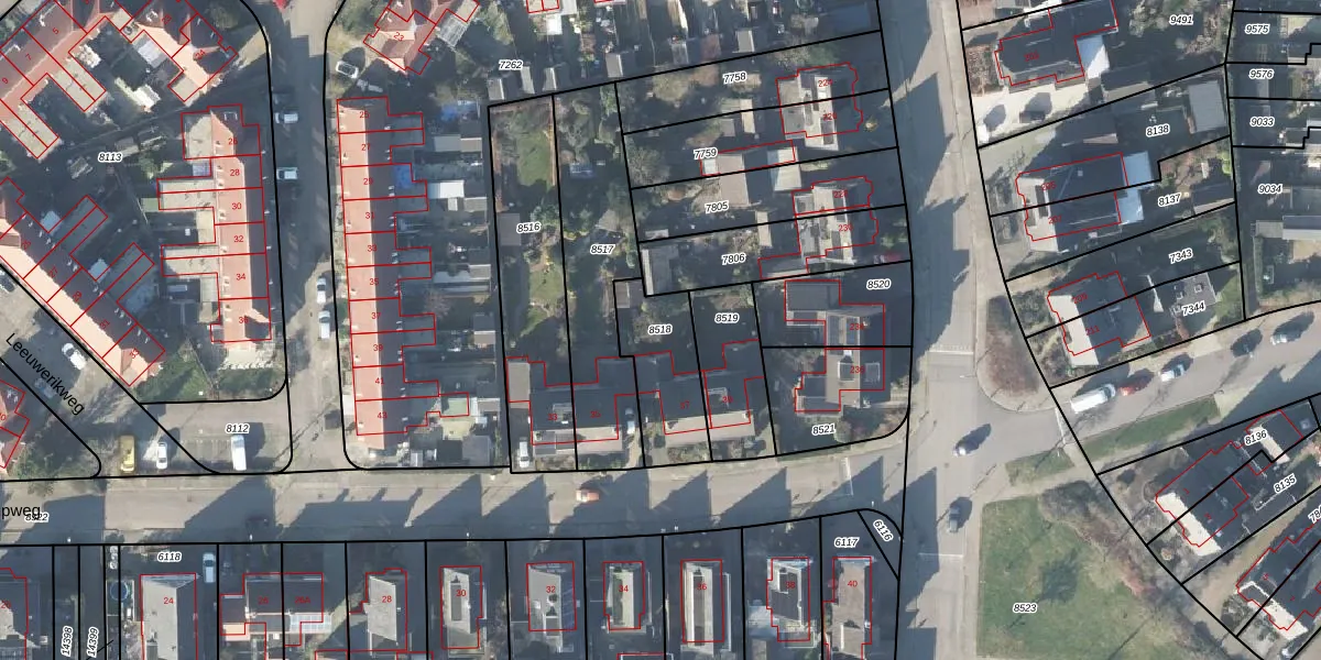 Gebruik de zoekbalk of klik op een perceel om informatie over het perceel te bekijken.