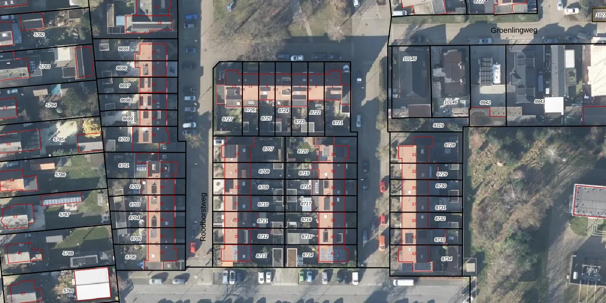 Gebruik de zoekbalk of klik op een perceel om informatie over het perceel te bekijken.