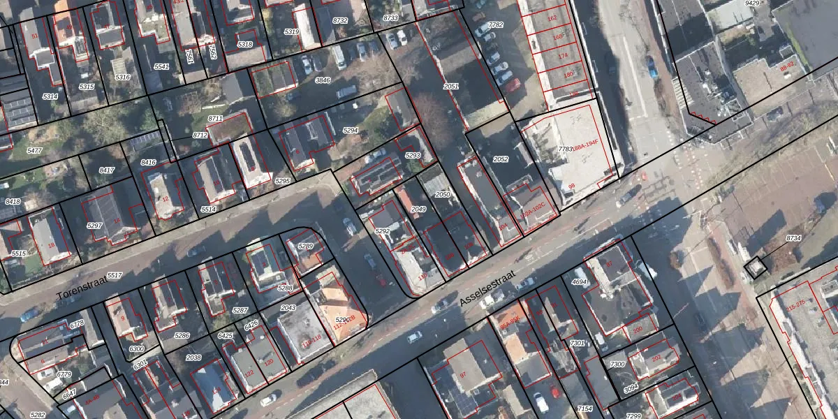 Gebruik de zoekbalk of klik op een perceel om informatie over het perceel te bekijken.