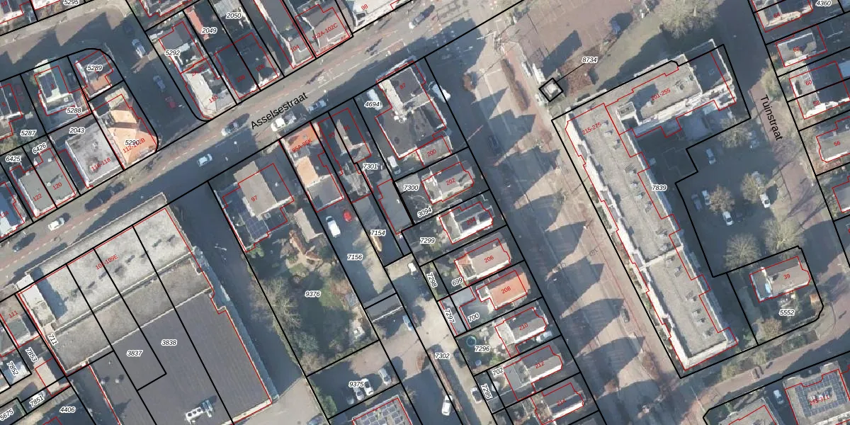 Gebruik de zoekbalk of klik op een perceel om informatie over het perceel te bekijken.