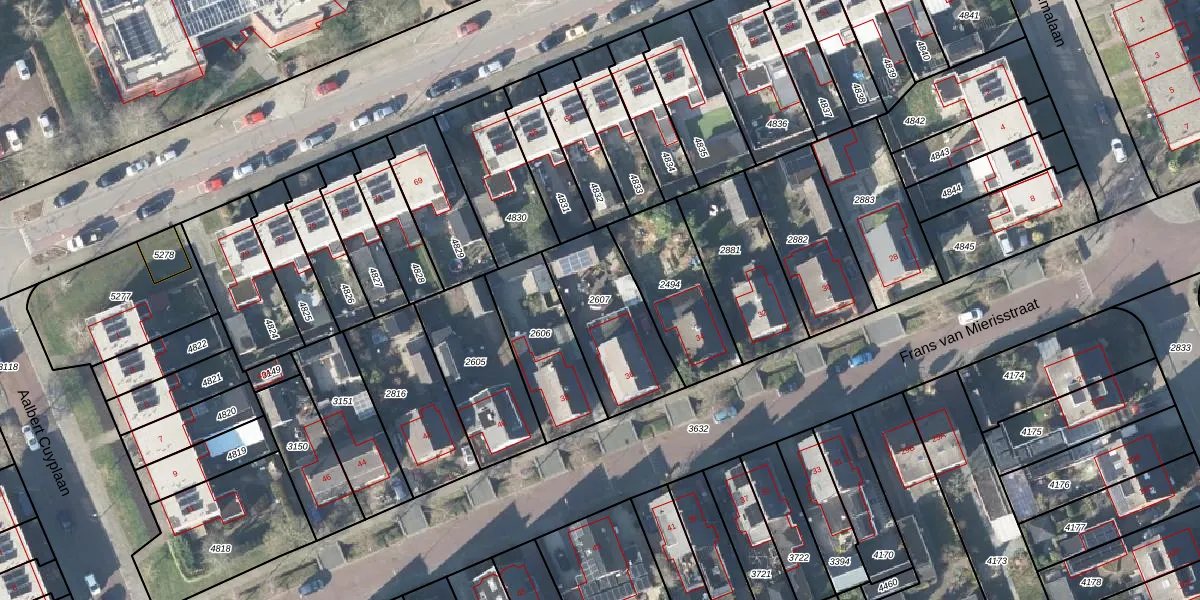 Gebruik de zoekbalk of klik op een perceel om informatie over het perceel te bekijken.