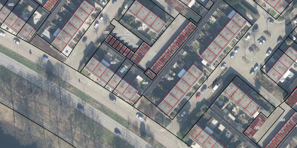 Gebruik de zoekbalk of klik op een perceel om informatie over het perceel te bekijken.
