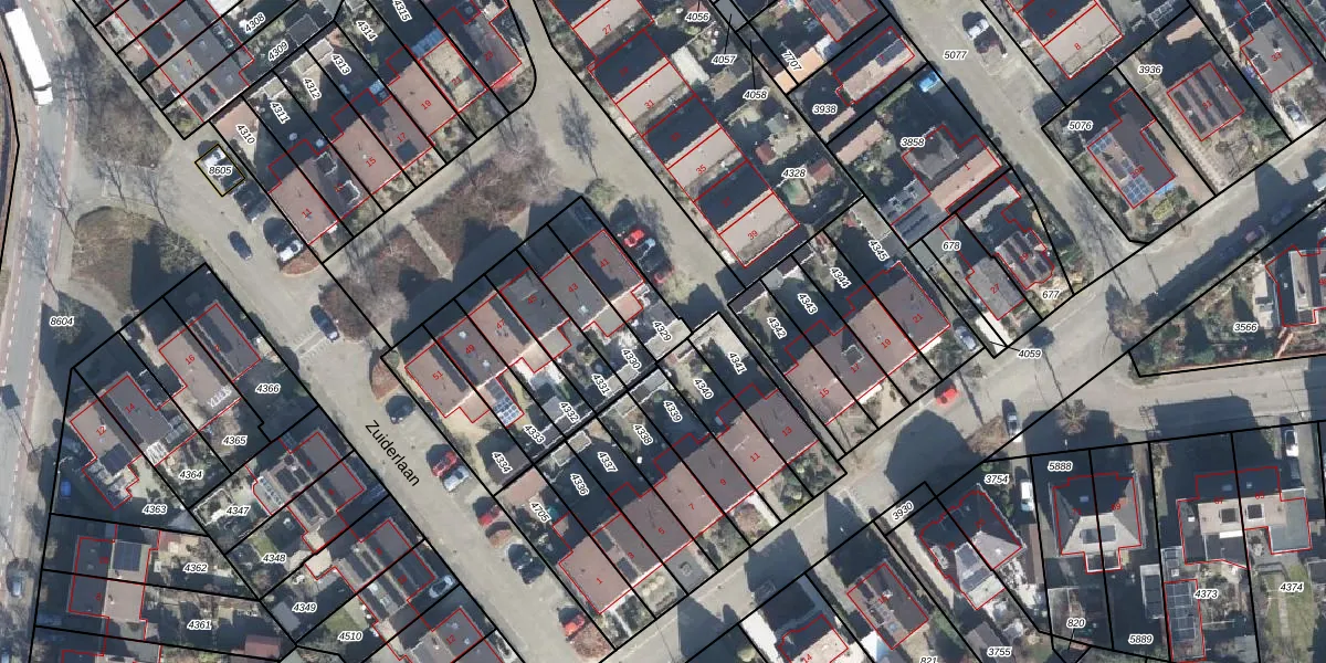 Gebruik de zoekbalk of klik op een perceel om informatie over het perceel te bekijken.