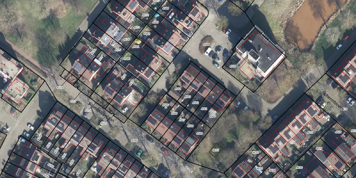 Gebruik de zoekbalk of klik op een perceel om informatie over het perceel te bekijken.