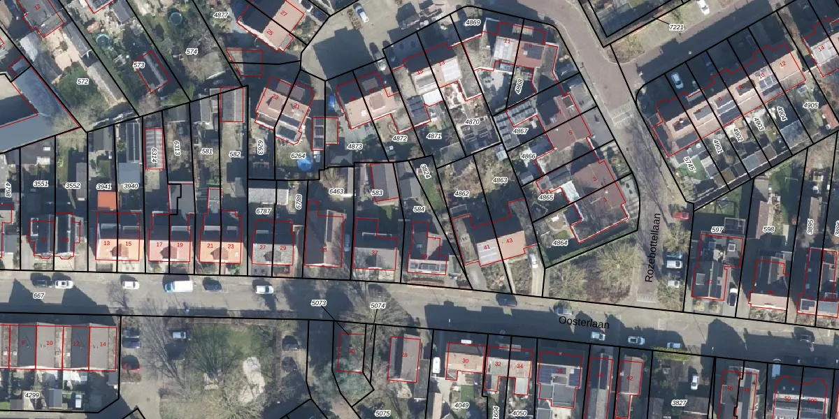 Gebruik de zoekbalk of klik op een perceel om informatie over het perceel te bekijken.