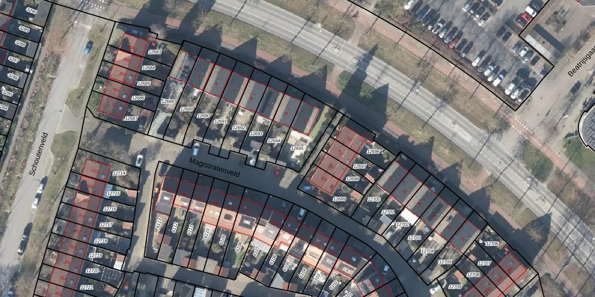 Gebruik de zoekbalk of klik op een perceel om informatie over het perceel te bekijken.