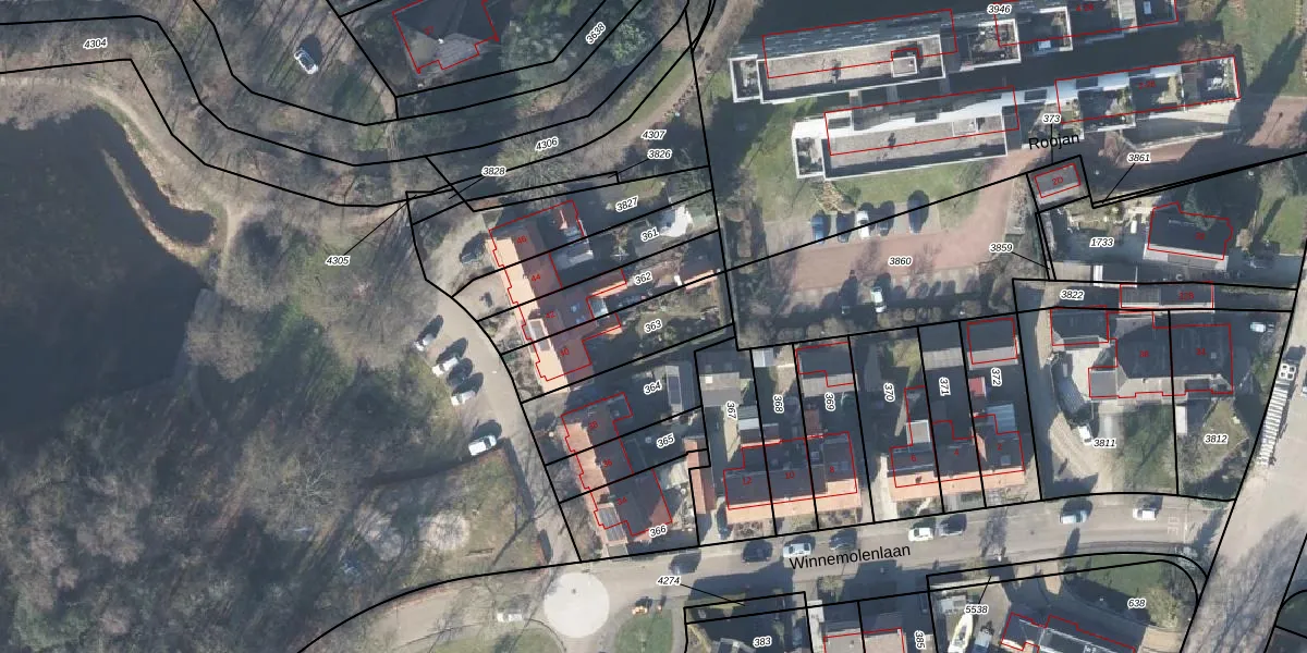 Gebruik de zoekbalk of klik op een perceel om informatie over het perceel te bekijken.