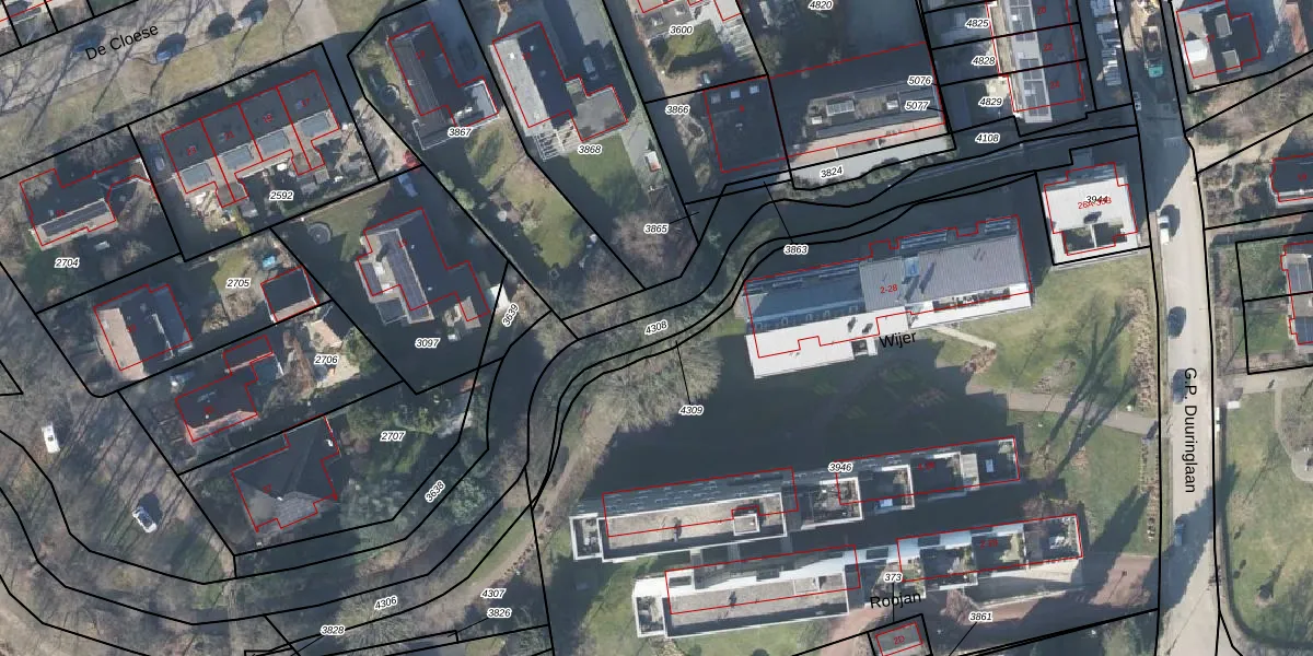 Gebruik de zoekbalk of klik op een perceel om informatie over het perceel te bekijken.
