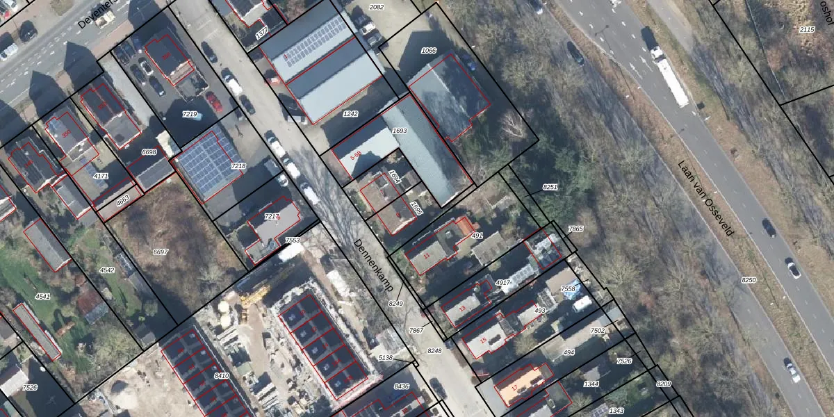 Gebruik de zoekbalk of klik op een perceel om informatie over het perceel te bekijken.