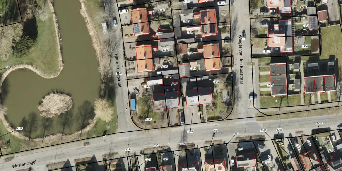 Gebruik de zoekbalk of klik op een perceel om informatie over het perceel te bekijken.